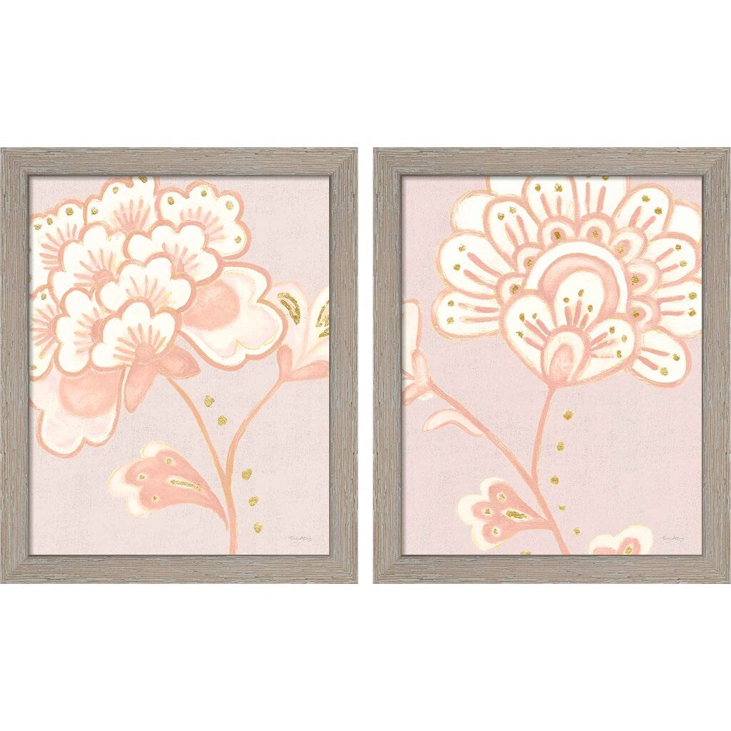 Flora Chinoiserie Textured Terra by Emily Adams, 2 Piece Rustic White Framed Art Set