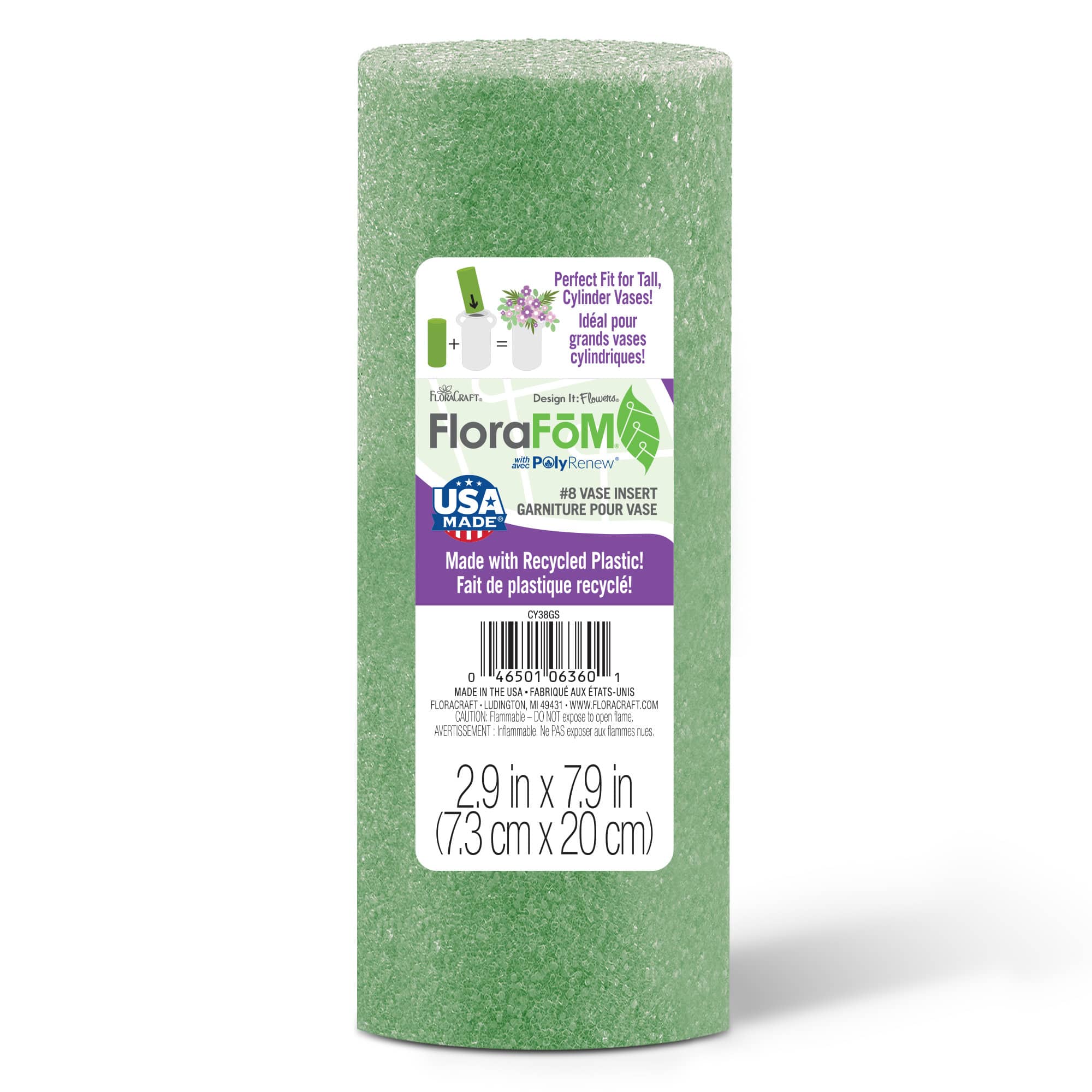 FloraCraft® 3" x 8" Green FloraFōM® Vase Insert