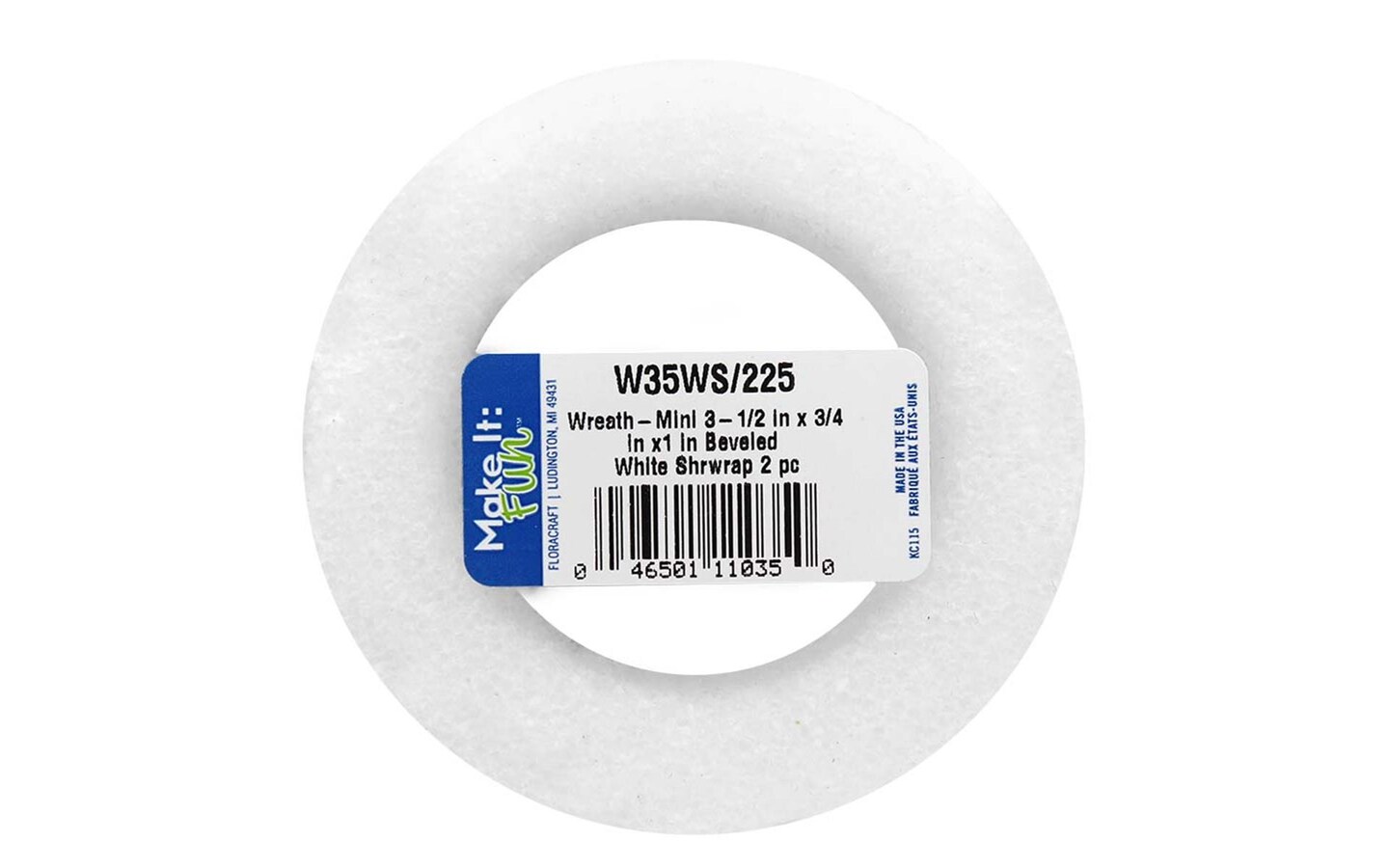 Floracraft Styrofoam Wreath Bev Pkg 3.5" White 2Pc