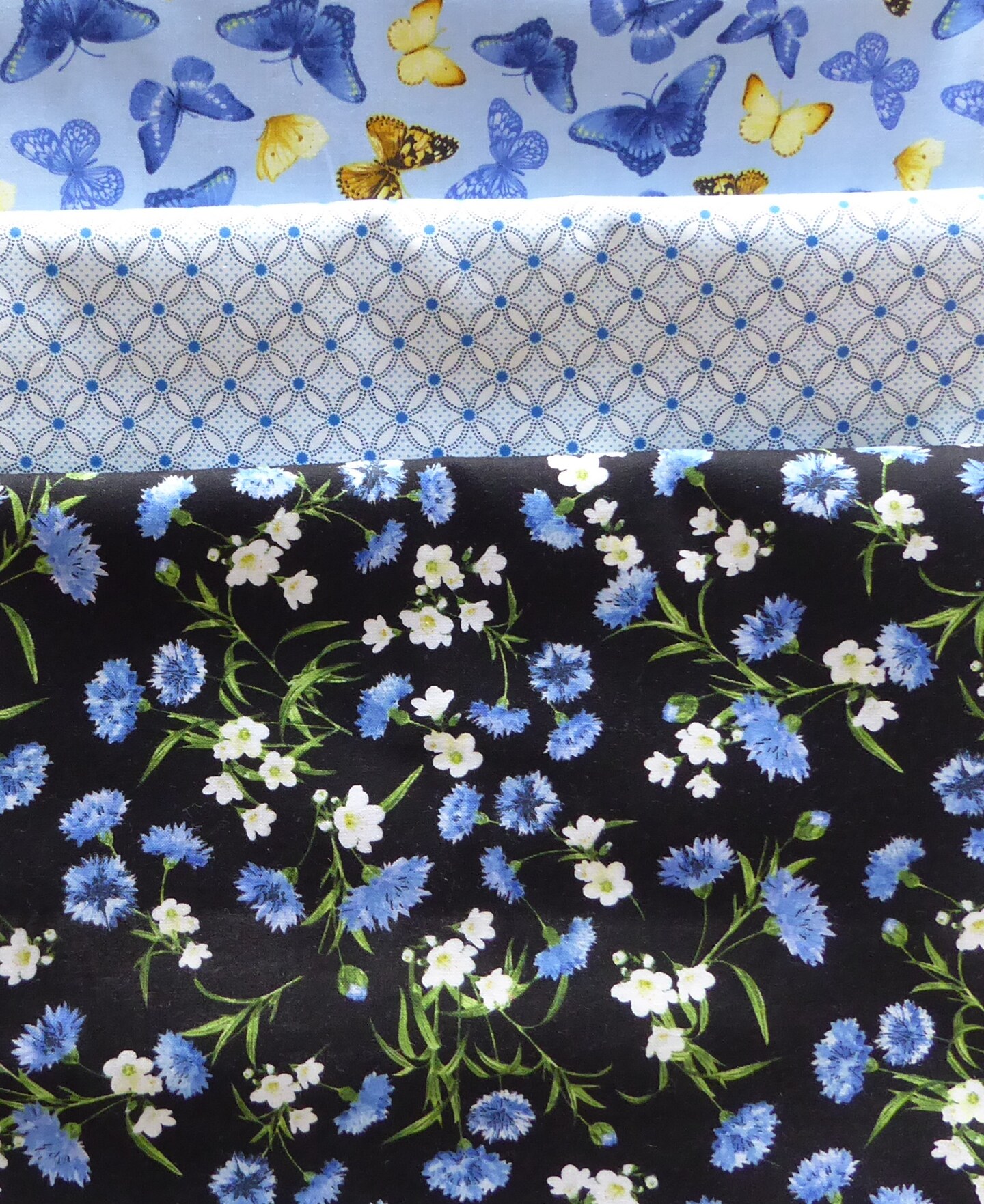 Floral Blue Butterfly 3 Yard Quilt Bundle Cotton by Sue's Creating Cottage