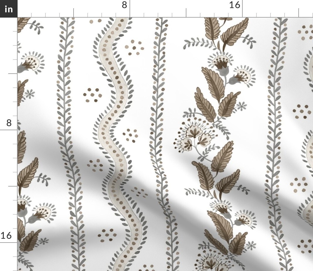 Floral Botanical Retro Vintage Directional Brown Wildflower Stripes Granny Chic Large Scale Custom Printed Fabric by Spoonflower Various Fabrics by the Yard or Fat Quarter
