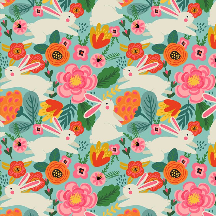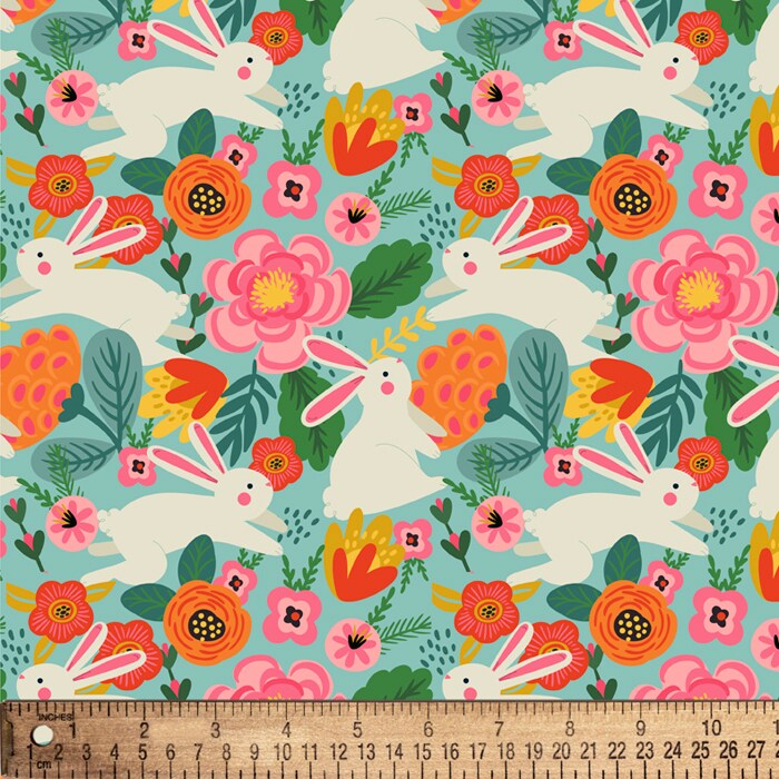 Floral Bunny Garden Cotton Fabric | By the Yard | Sewing and Crafting | 44 inches wide
