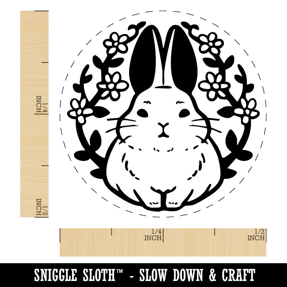Floral Bunny Rabbit Emblem Easter Rubber Stamp for Stamping Crafting Planners