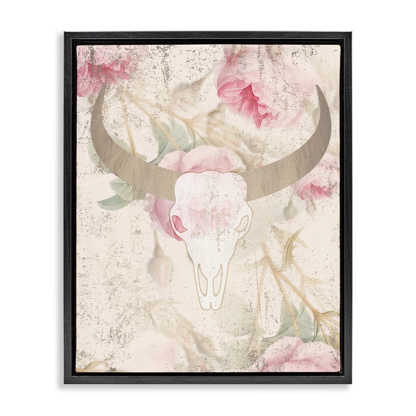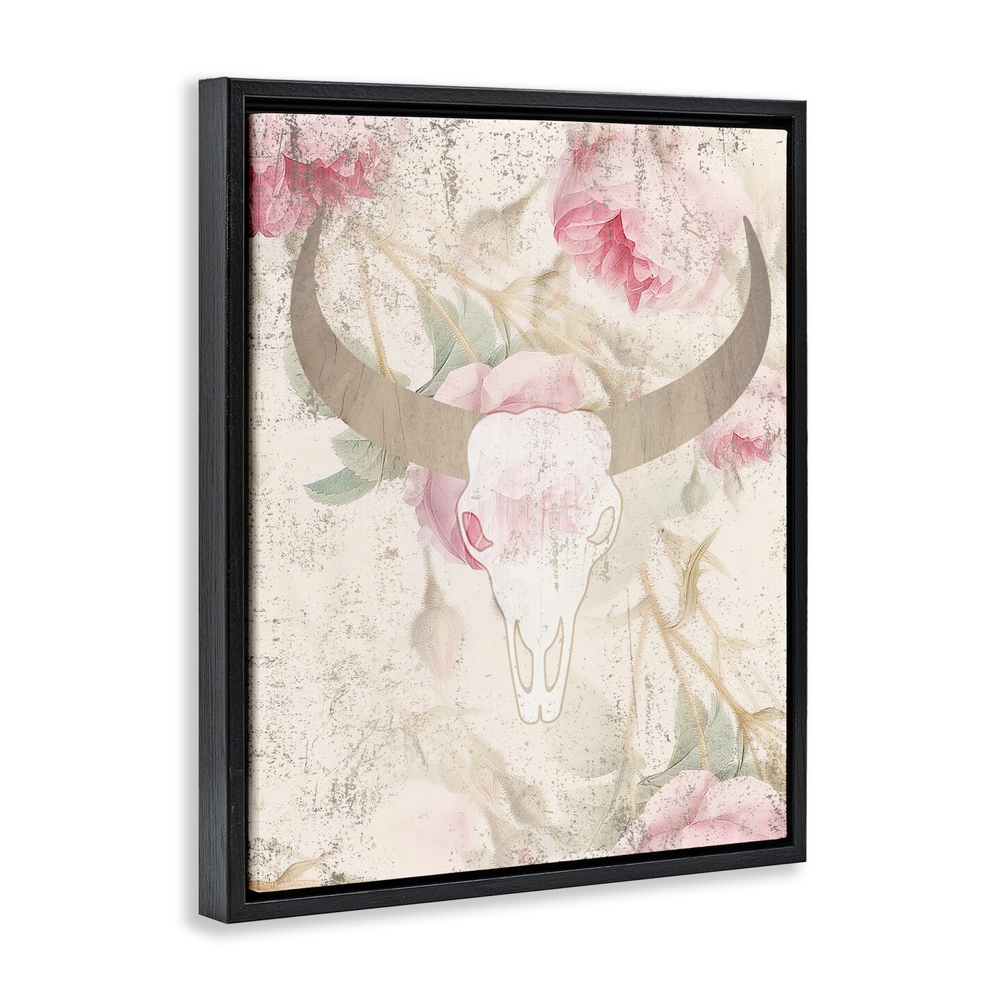 Floral Cattle Skull Blooms Floating Frame Canvas Art