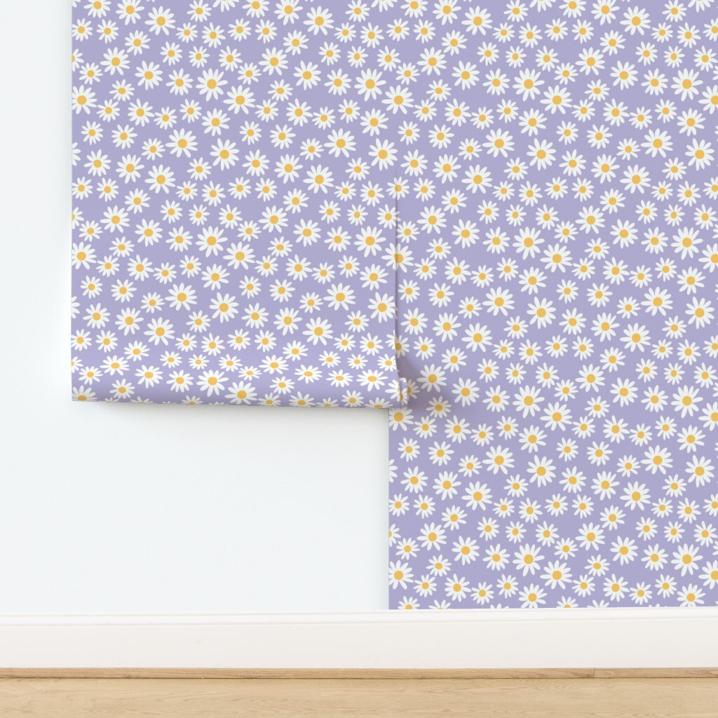 Floral Daisies Mini Dollhouse Flowers 90S Y2K Purple Lilac Spring Custom Removable Wallpaper by Spoonflower Peel & Stick Wallpaper 2FT Wide