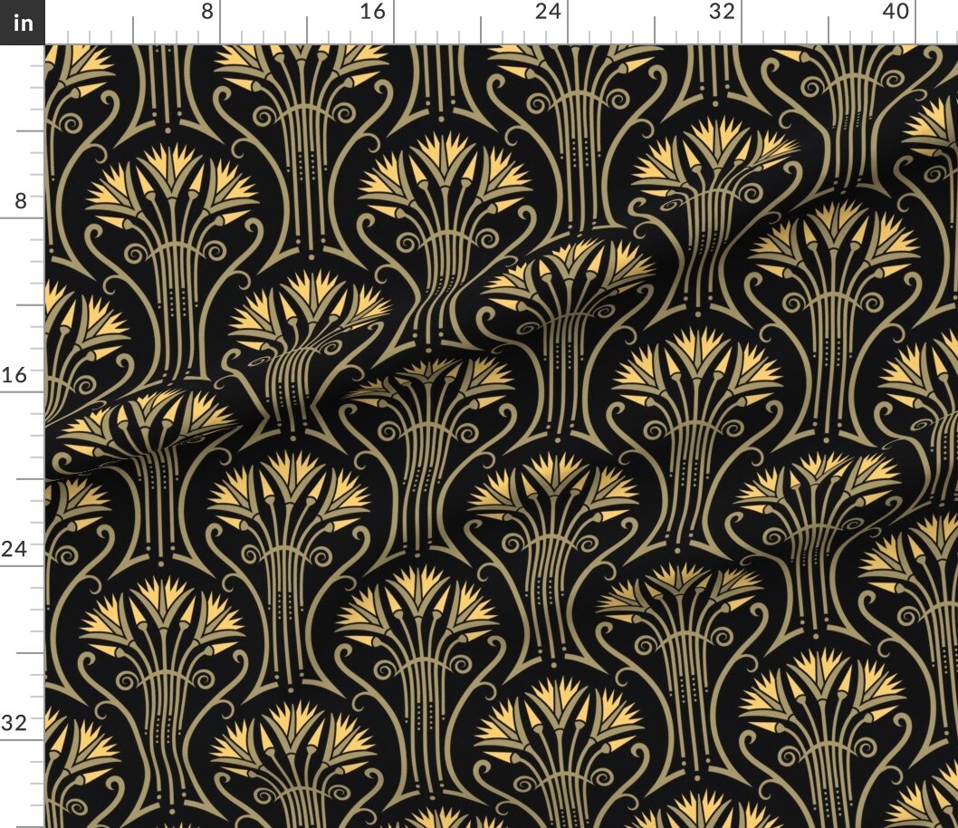 Floral Damask Black Yellow Abstract Flowers Vintage Glam Custom Printed Fabric by Spoonflower Various Fabrics by the Yard or Fat Quarter