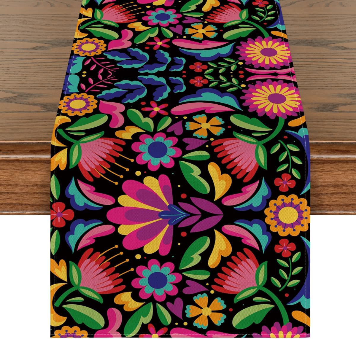 Floral Dia De Los Muertos Serape Fiesta Mexican Table Runner, Mexico Day of The Dead Kitchen Dining Table Decoration for Home Party Decor 13x72 Inch
