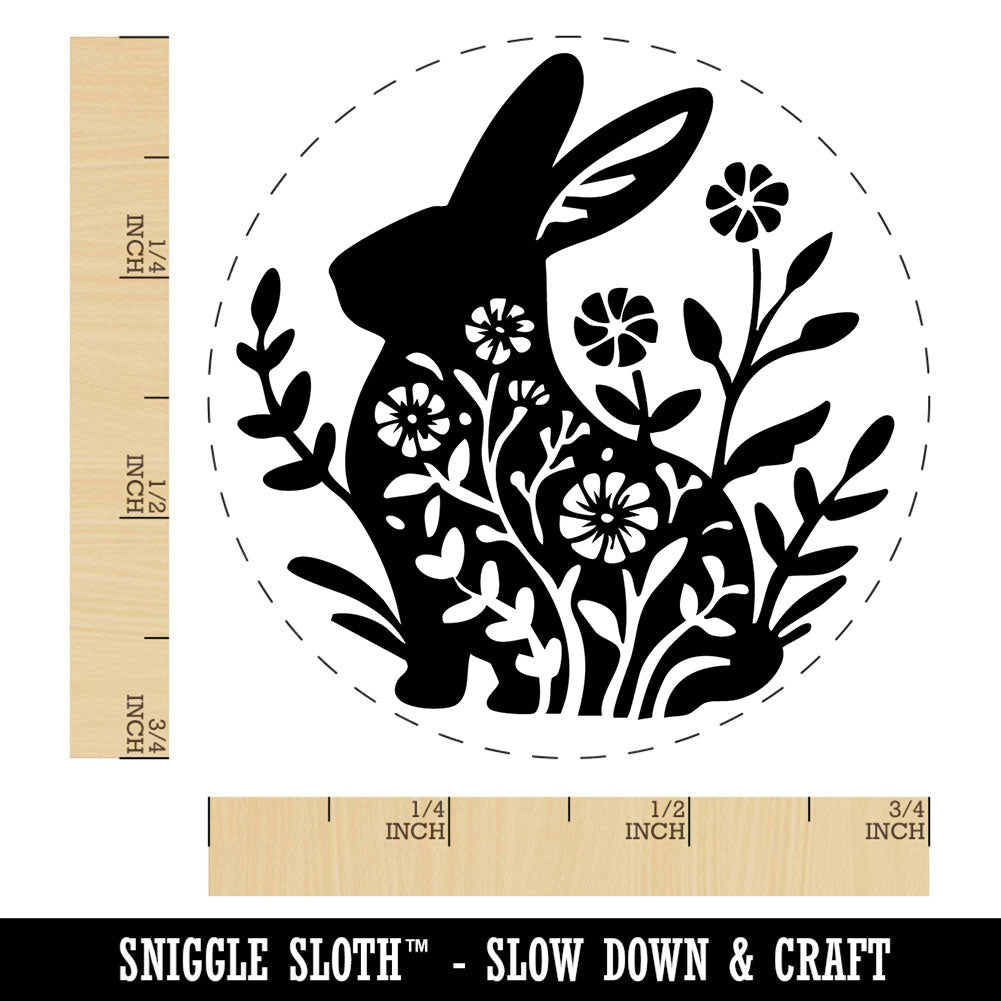 Floral Easter Bunny Rabbit Silhouette Flowers Self-Inking Rubber Stamp for Stamping Crafting Planners