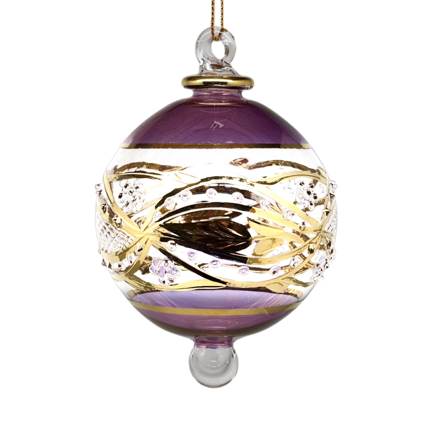 Floral Etched 3" Glass Ball - Purple
