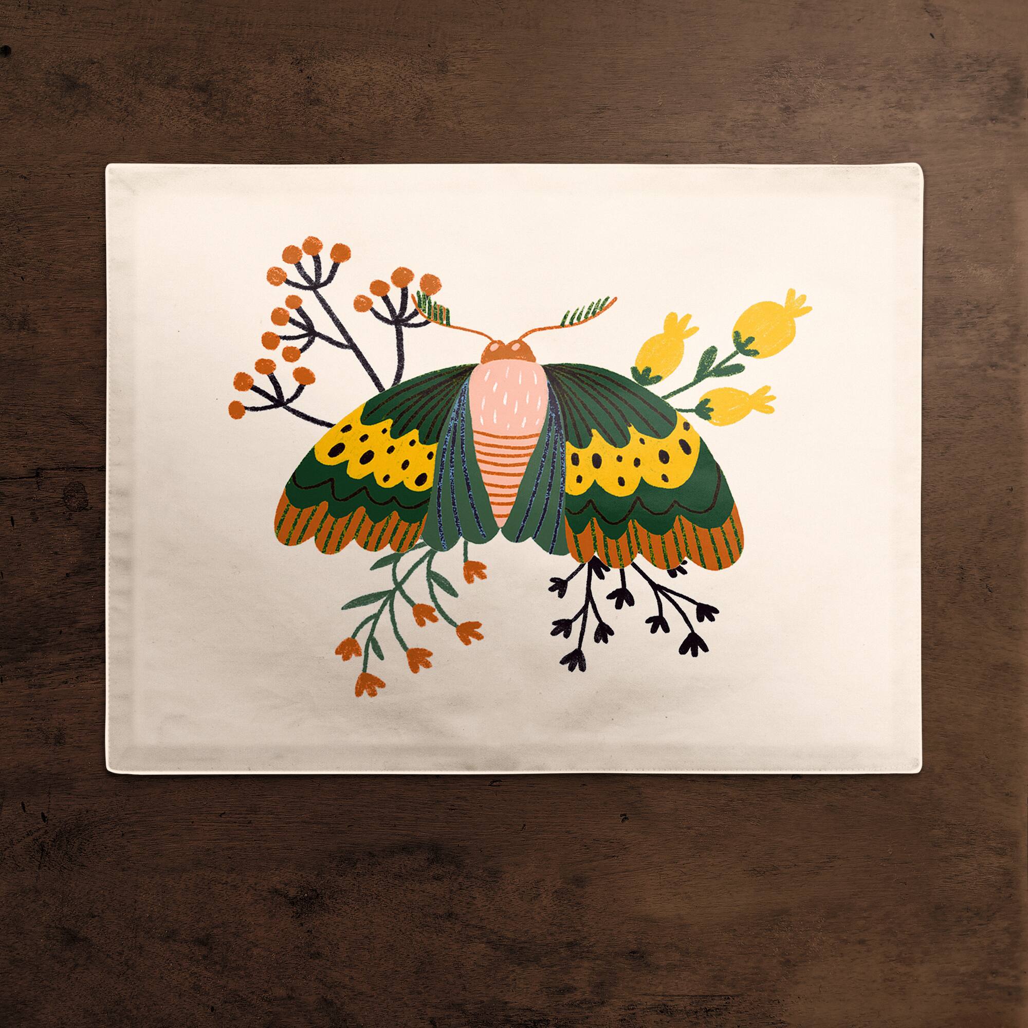 Floral Moth 18" x 14" Cotton Twill Placemat