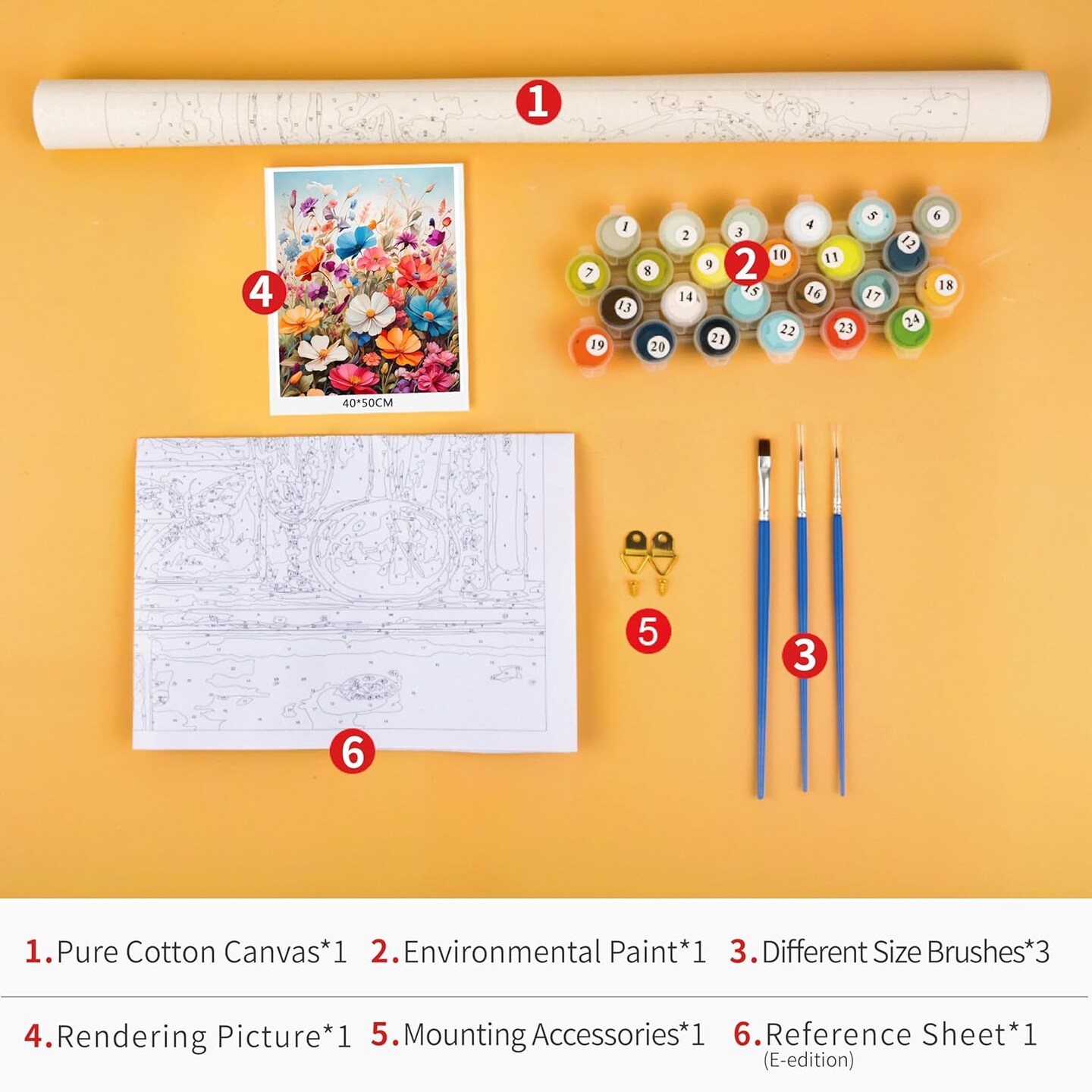 Floral Paint by Numbers for Adults, Abstract Flowers Paint by Number Kits for Beginner with Brushes and Pigment, Wildflowers Oil Painting for Home Wall Decoration, 16x20 Inch