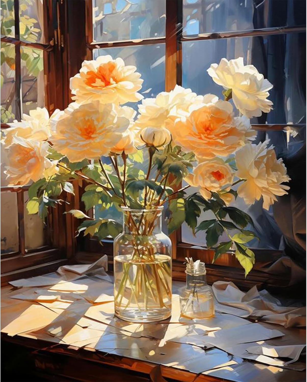 Floral Paint-by-Numbers Kit for Adults (16x20") – Beginner-Friendly DIY Flowers Canvas Painting for Gifts & Home Wall Decor