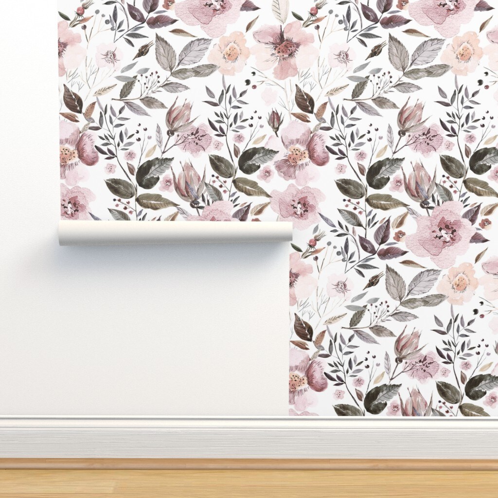 Floral Pastel Botanical Nature Roses Custom Removable Wallpaper by Spoonflower Peel & Stick Wallpaper 2FT Wide