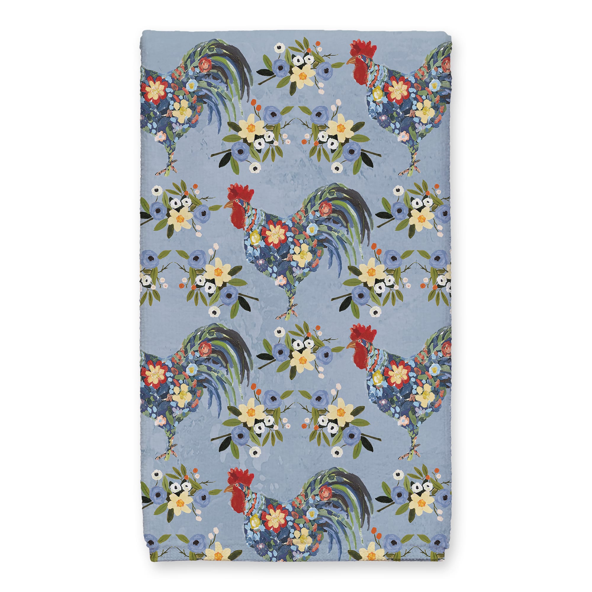 Floral Rooster Collage Blue 16" x 25" Towel Set