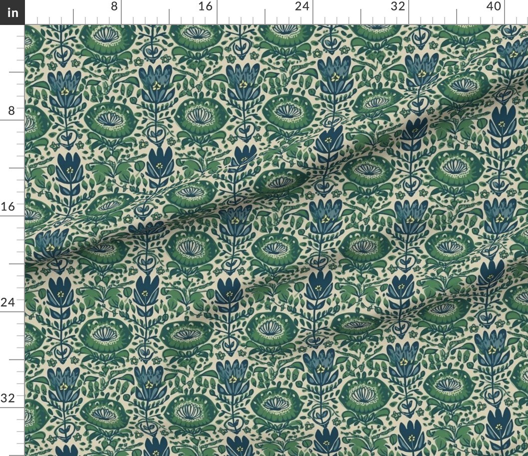 Floral Seashell Leaves Wood Block Custom Printed Fabric by Spoonflower Various Fabrics by the Yard or Fat Quarter