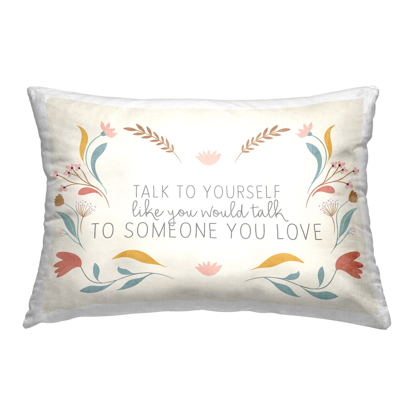 Floral Self Love Inspirational Decorative Printed Throw Pillow Design by Kim Allen, 14 x 7 x 20