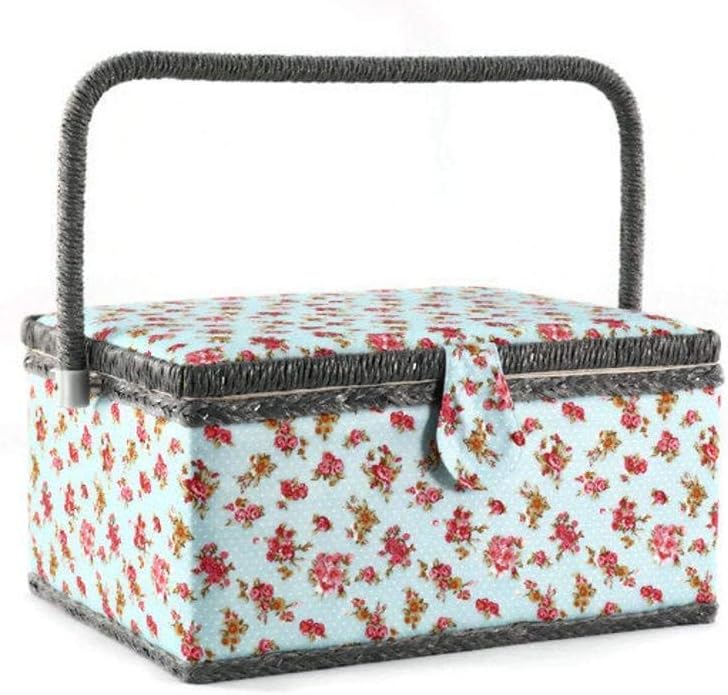 Floral Sewing Basket – Large Storage Box with Tray, Pin Cushion & Pocket