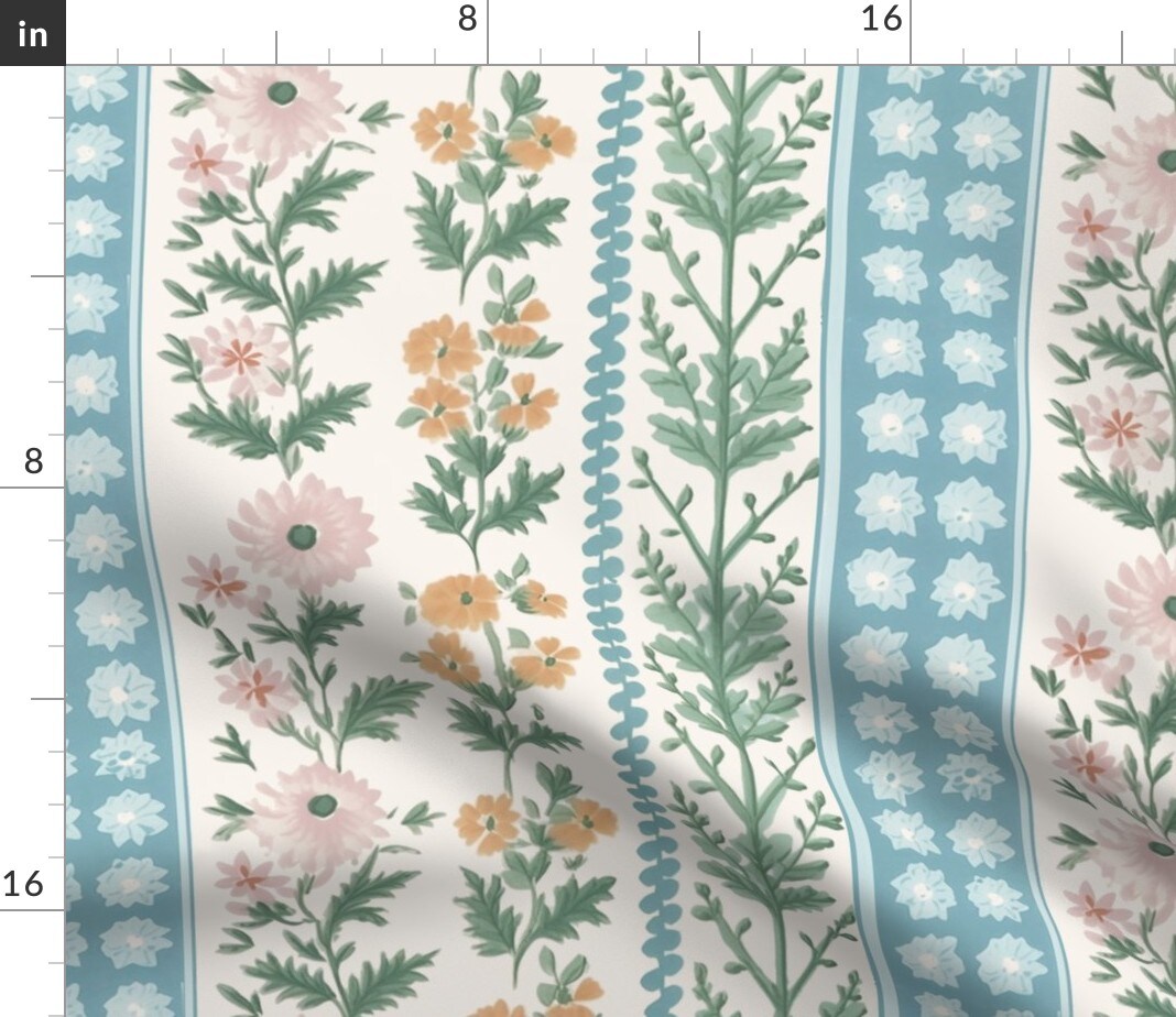 Floral Stripes Pink Green Blue Botanical Flowers Custom Printed Fabric by Spoonflower Various Fabrics by the Yard or Fat Quarter