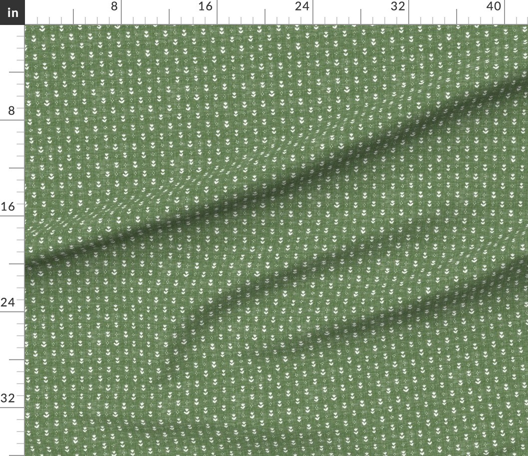 Floral Tulip Small Floral Feminine Dainty Boho Doll House Mini Small Scale Floral Flowers Green Block Print Small Floral Dainty Floral Boho Custom Printed Fabric by Spoonflower Various Fabrics by the Yard or Fat Quarter 14223883