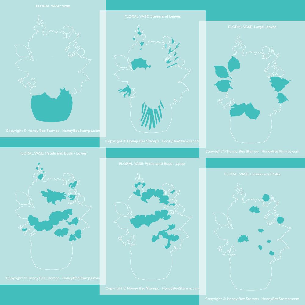 Floral Vase - Set of 6 - A2 4.25"x5.5" Coordinating Stencils - Retiring