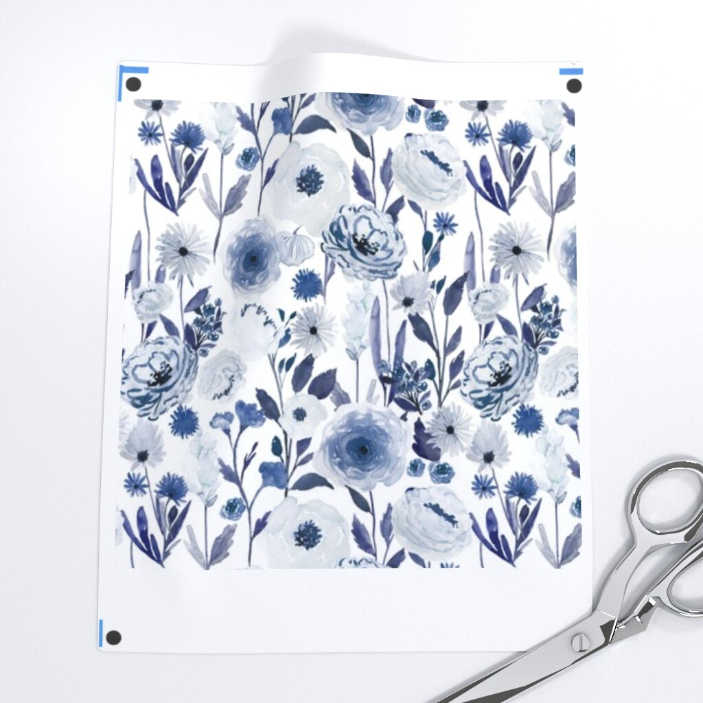 Floral Vintage Style Nursery Blue White Custom Pre-pasted Wallpaper by Spoonflower Pre-Pasted Wallpaper 2FT Wide