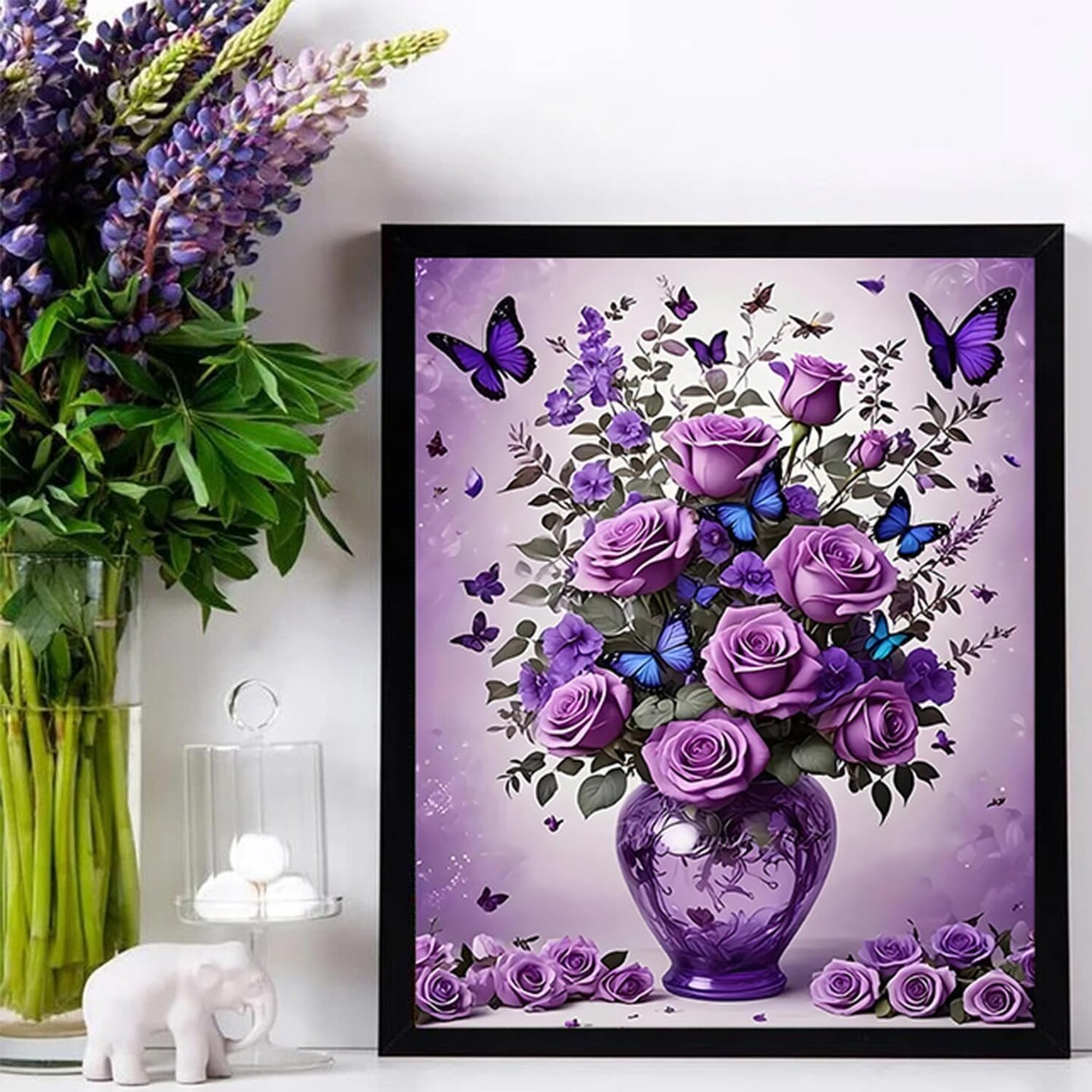 Floral&Butterfly Diamond Art Kits for Adults Beginners,DIY 5D Diamond Painting Flowers,Round Full Drill Gem Art for Adults,Diamond Dots Paintings Picture Crafts Home Wall Decor