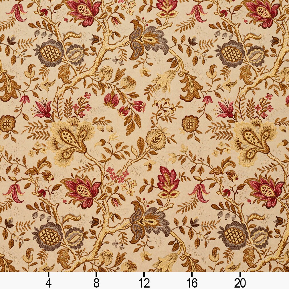Florence - Gold & Yellow,Red & Burgundy Floral Upholstery Fabric 54 Inches"