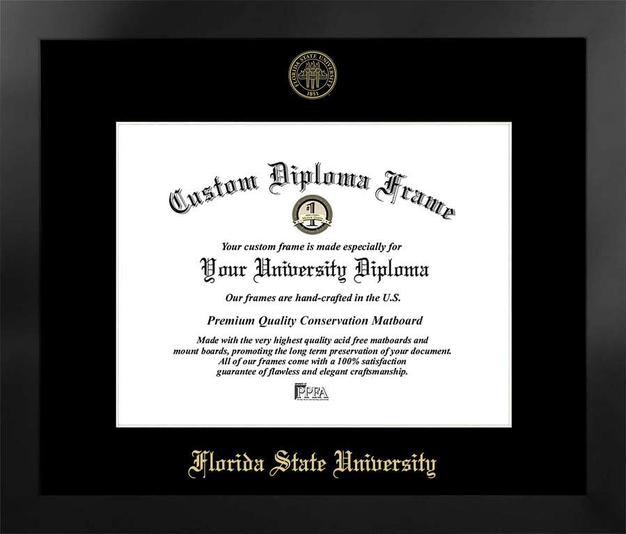 Florida State University 11w x 8.5h Manhattan Black Single Mat Gold Embossed Diploma Frame with Bonus Campus Images Lithograph (value savings at $59)