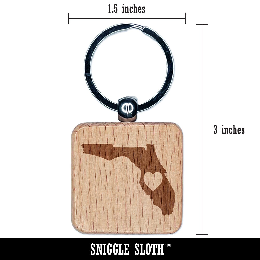 Florida State with Heart Engraved Wood Square Keychain Tag Charm