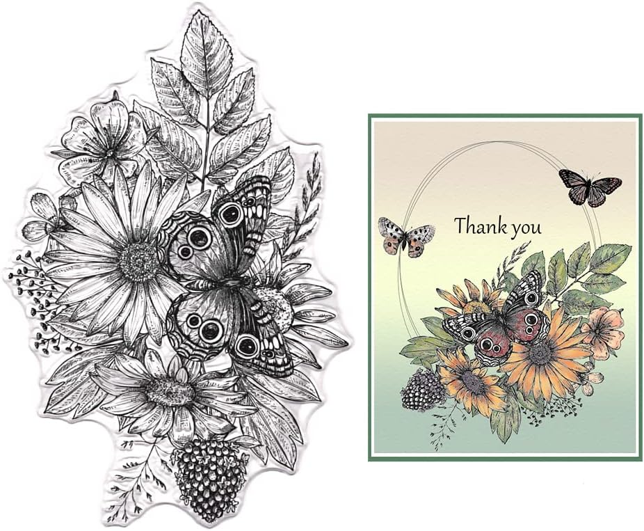 Flower & Butterfly Clear Stamps for Card Making, Plant Leaves Stamps for Holiday Decor & DIY Scrapbooking
