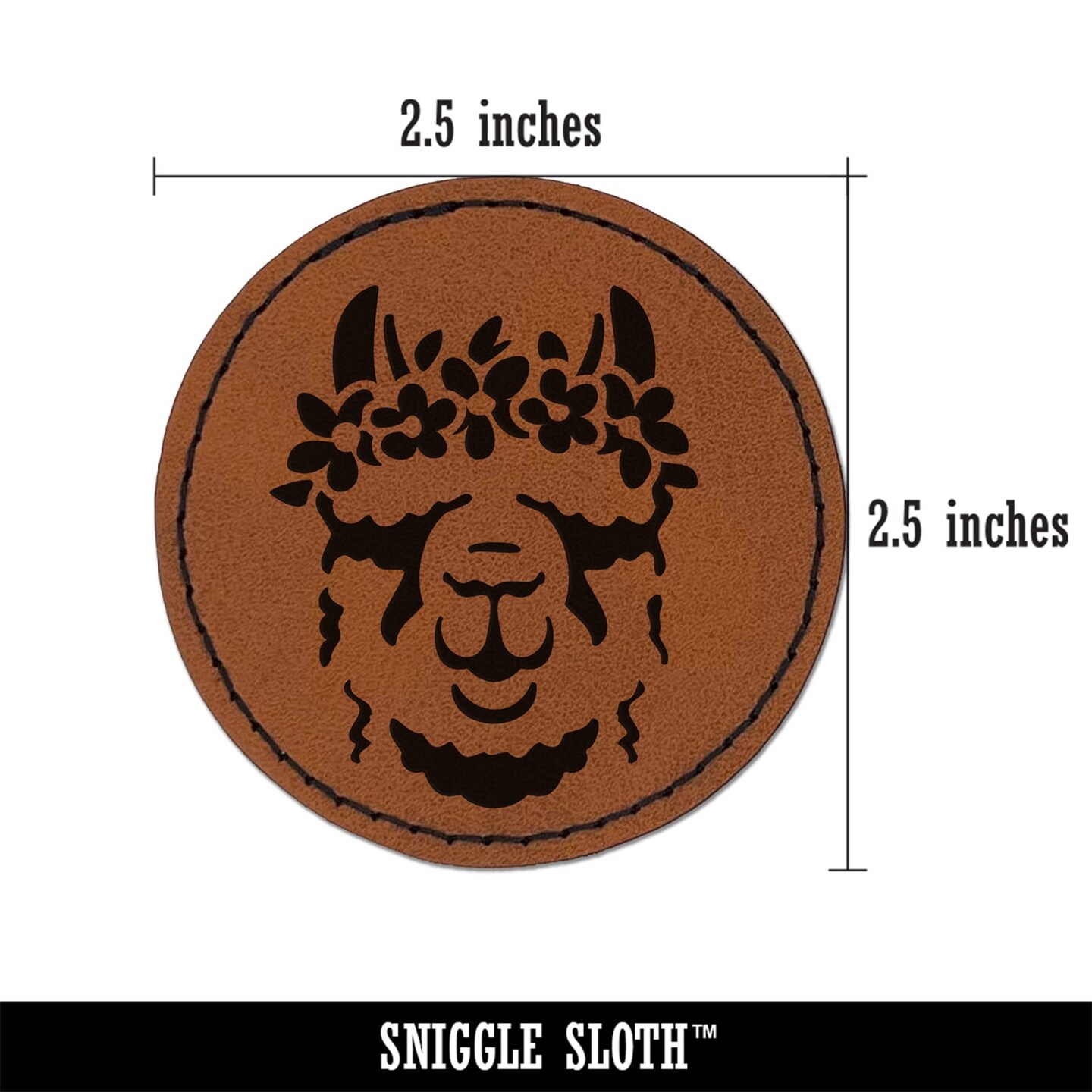 Flower Crown Llama Head Round Iron-On Engraved Faux Leather Patch Applique - 2.5"