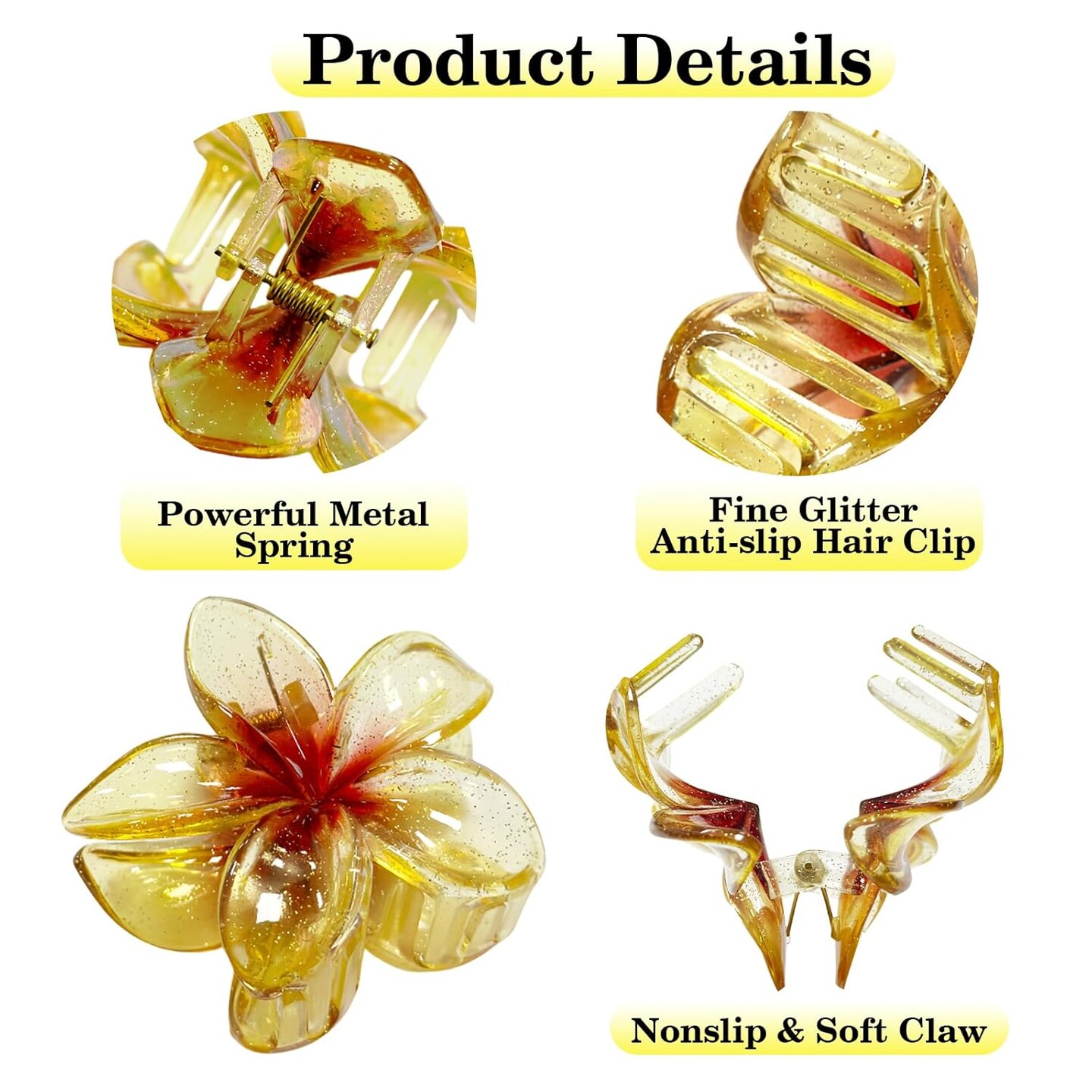 Flower Hair Clips for Women, 3Pcs Sparkling Flower Claw Clips