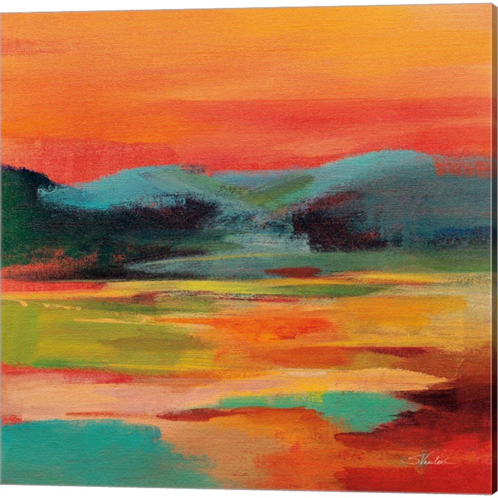 Flower Hill Sunset by Silvia Vassileva 14" x 14" Canvas Wall Art (Set of 2)