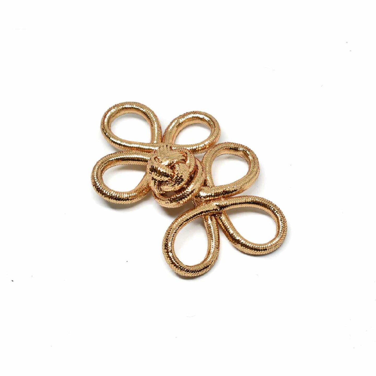 Flower Loop Button Metallic Gold For Clothing Bags DIY Crafts 4 Inch X 2 Inch