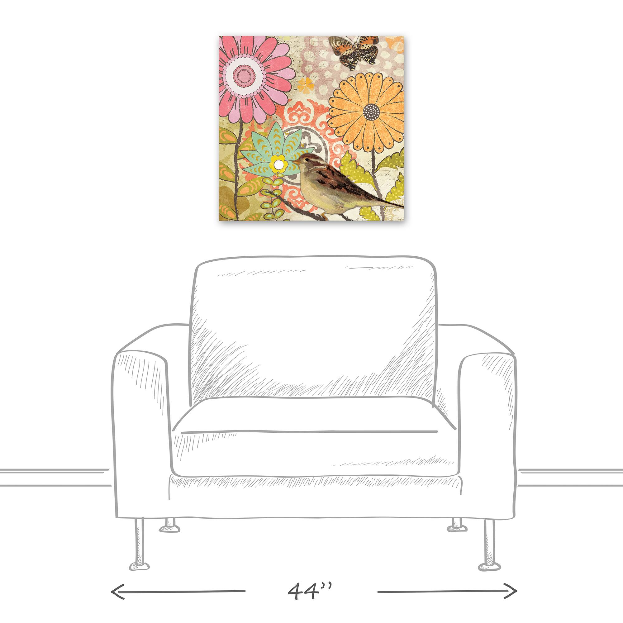 Flower Medallions With Bird 20" x 20" Canvas Wall Art