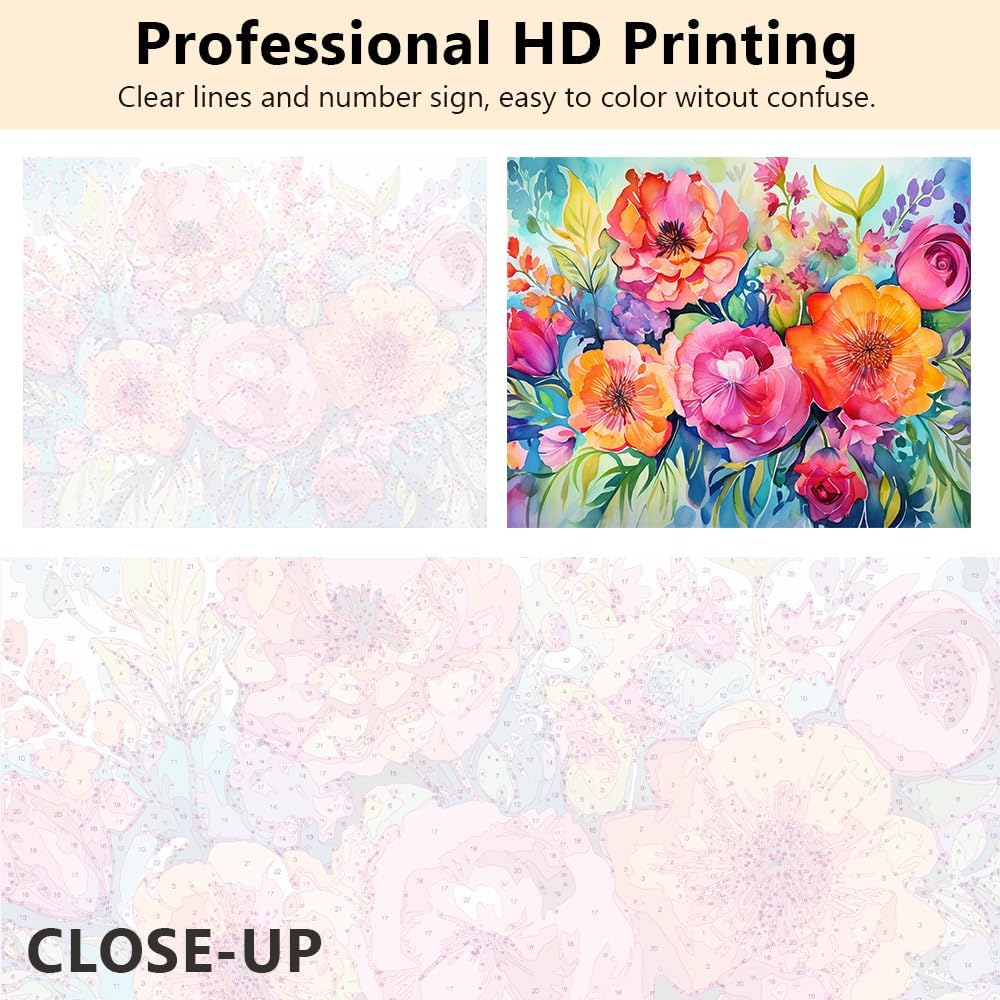 Flower Paint by Numbers for Adults & Kids – DIY Floral Canvas Painting Kit, Oil Painting Art Set for Beginners, Home Wall Decor, 16x20 Inch