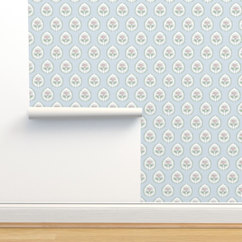 Flower Paisley Cottagecore Lotus Floral Teardrop Block Print French Country Custom Removable Wallpaper by Spoonflower Peel & Stick Wallpaper 2FT Wide