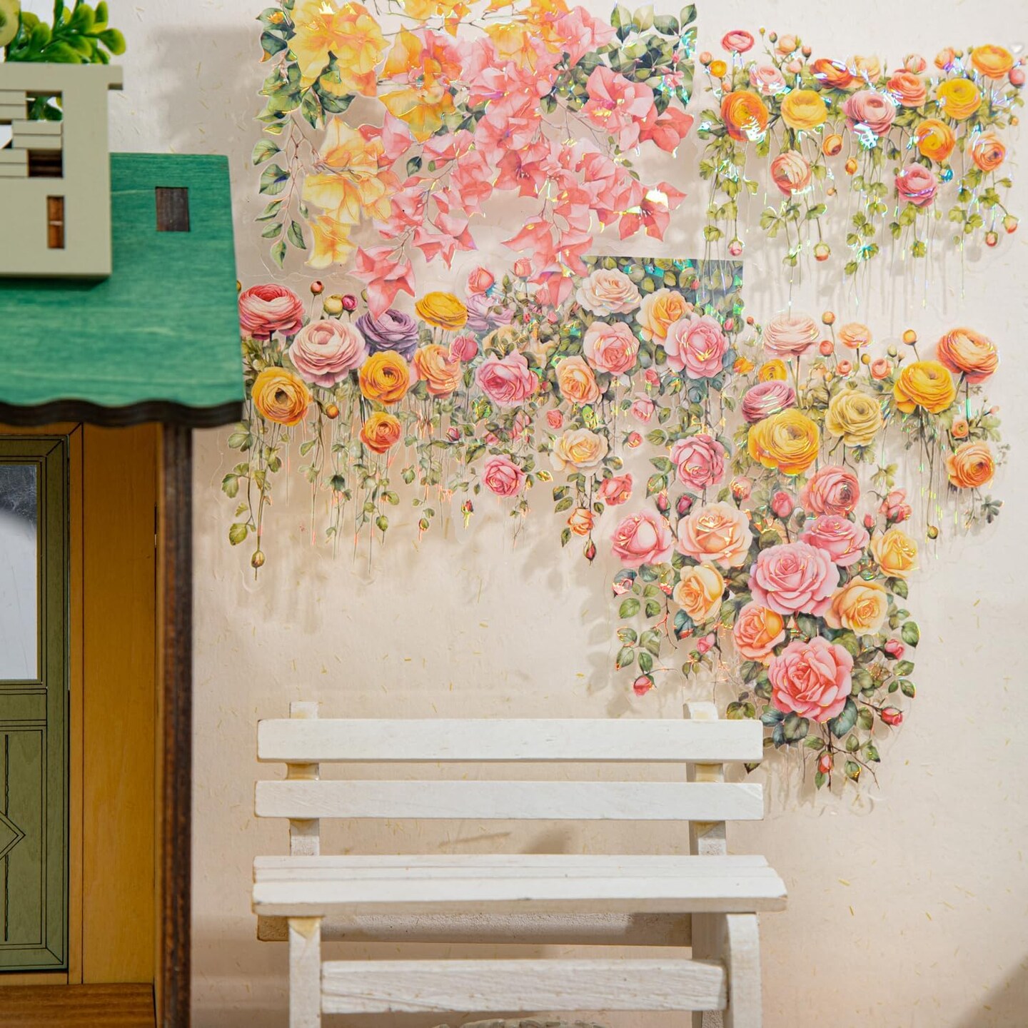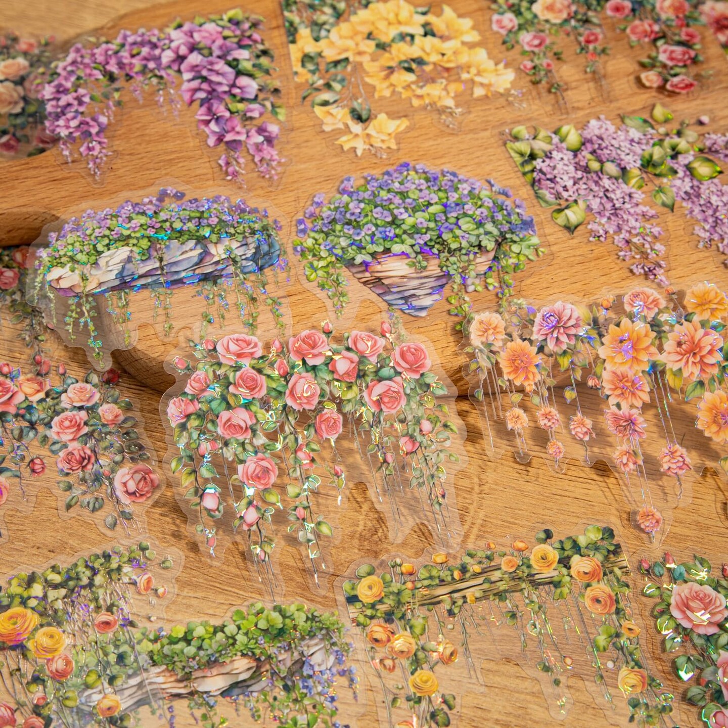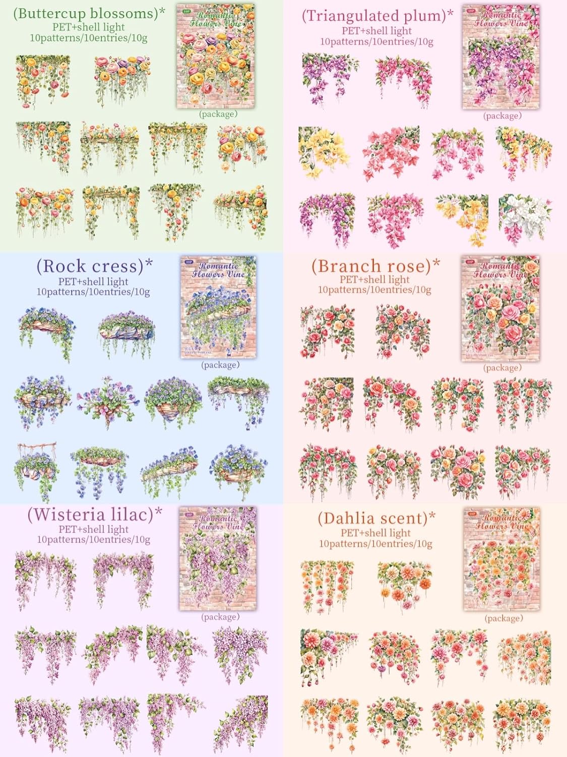 Flower Vine PET Stickers 60 Pcs Lot,6 Packs Glittering Floral Sticker