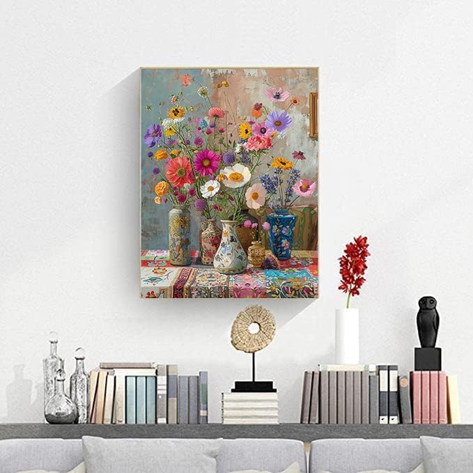 Flowers Diamond Painting Kits for Adults, Diamond Art Kits for Adults Beginner,DIY 5D Full Round Drill Small Diamond Dots Gem Art Kits for Adults,Home Wall Decor 12 x 16Inch