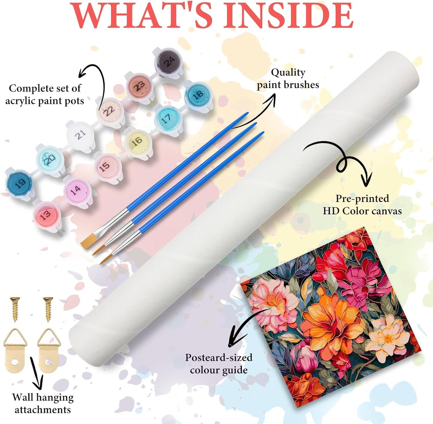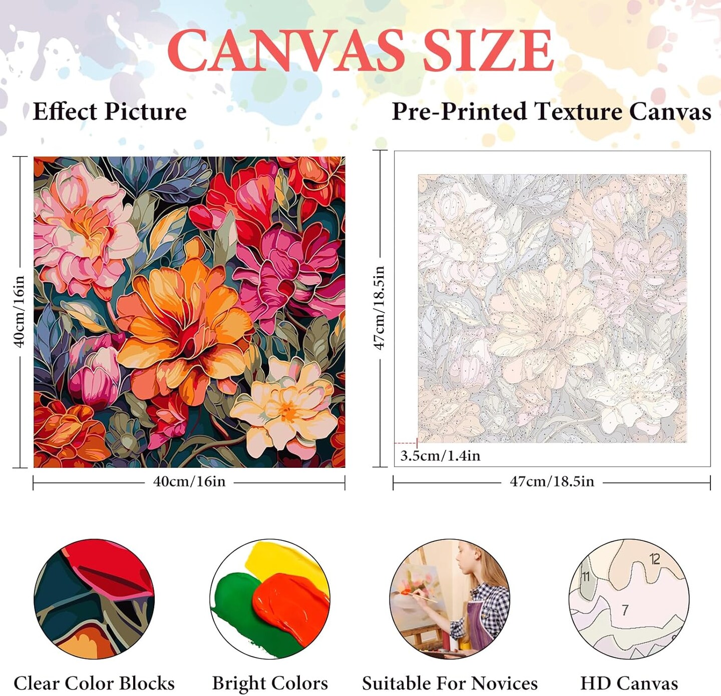 Flowers Paint-by-Numbers Kit for Adults (16"x16") – Beginner-Friendly DIY Canvas Painting, Acrylic/Watercolor Oil Art for Home Decor & Gifts