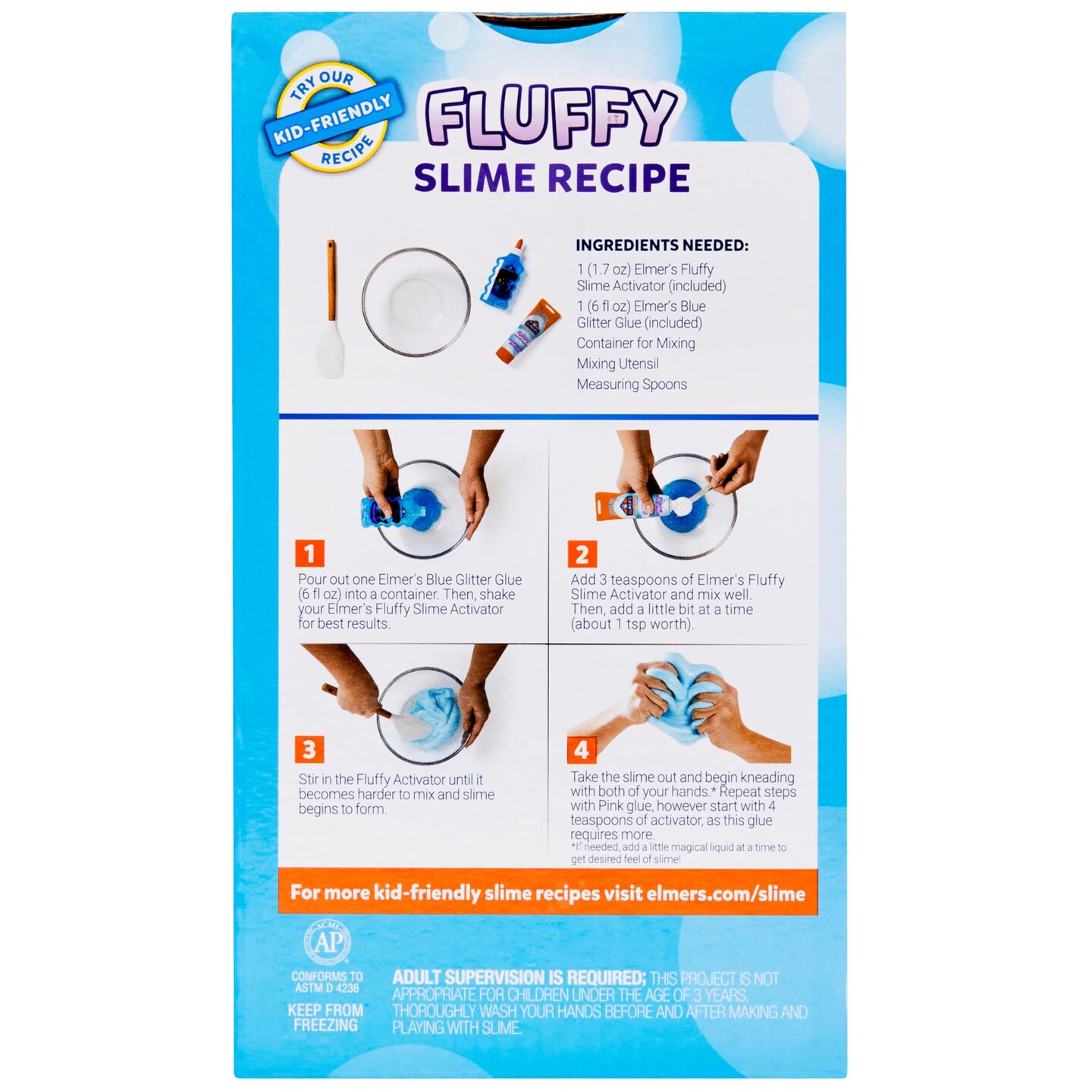 Fluffy Slime Kit, Includes Translucent Color Glue, Glitter Glue, Fluffy Slime Activator, 4 Count - Perfect for Birthday Parties, Gift Idea, Kids Activity