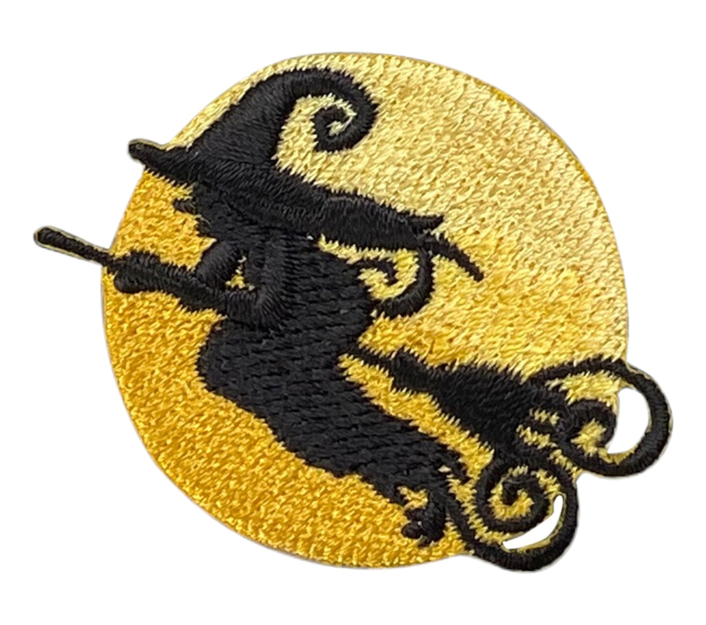 Flying Witch with a Full Moon, Halloween, Embroidered, Iron on Patch