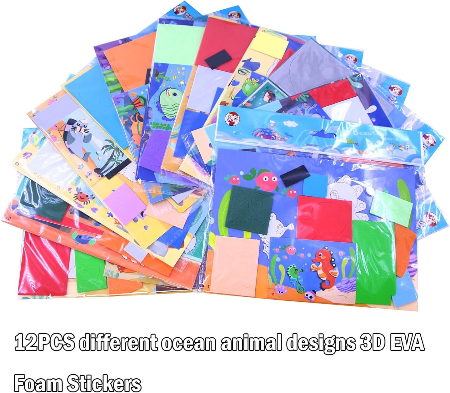 Foam Stickers for Toddlers 12PCS Sticky Foam DIY Craft Preschool Art Class Drawing Sticker Puzzle Art Kit for Kids Boys Girls (Sea Animals)
