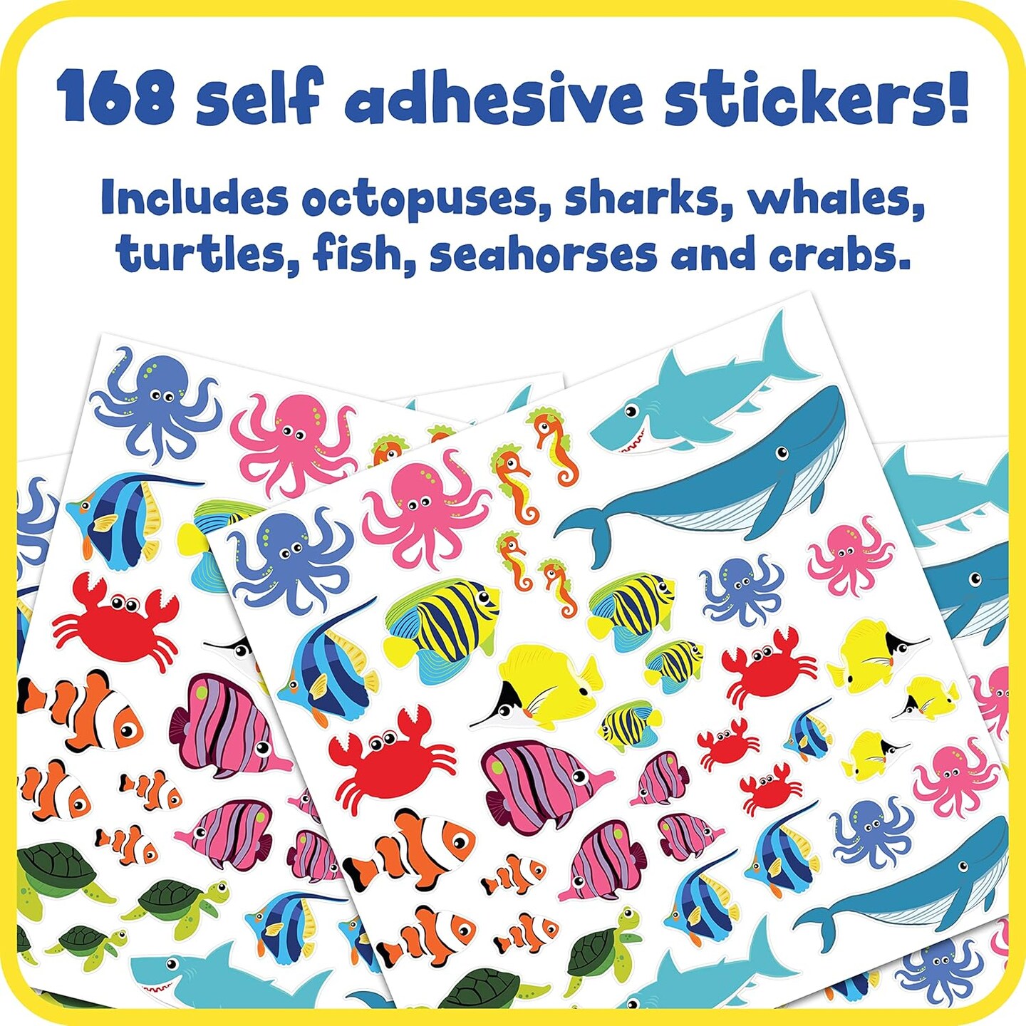 Foam Stickers - Sea Life - Pack of 168 - Self-Adhesive Stickers for Kids - 3D Puffy Ocean Stickers for Laptops, Party Favors and Crafts