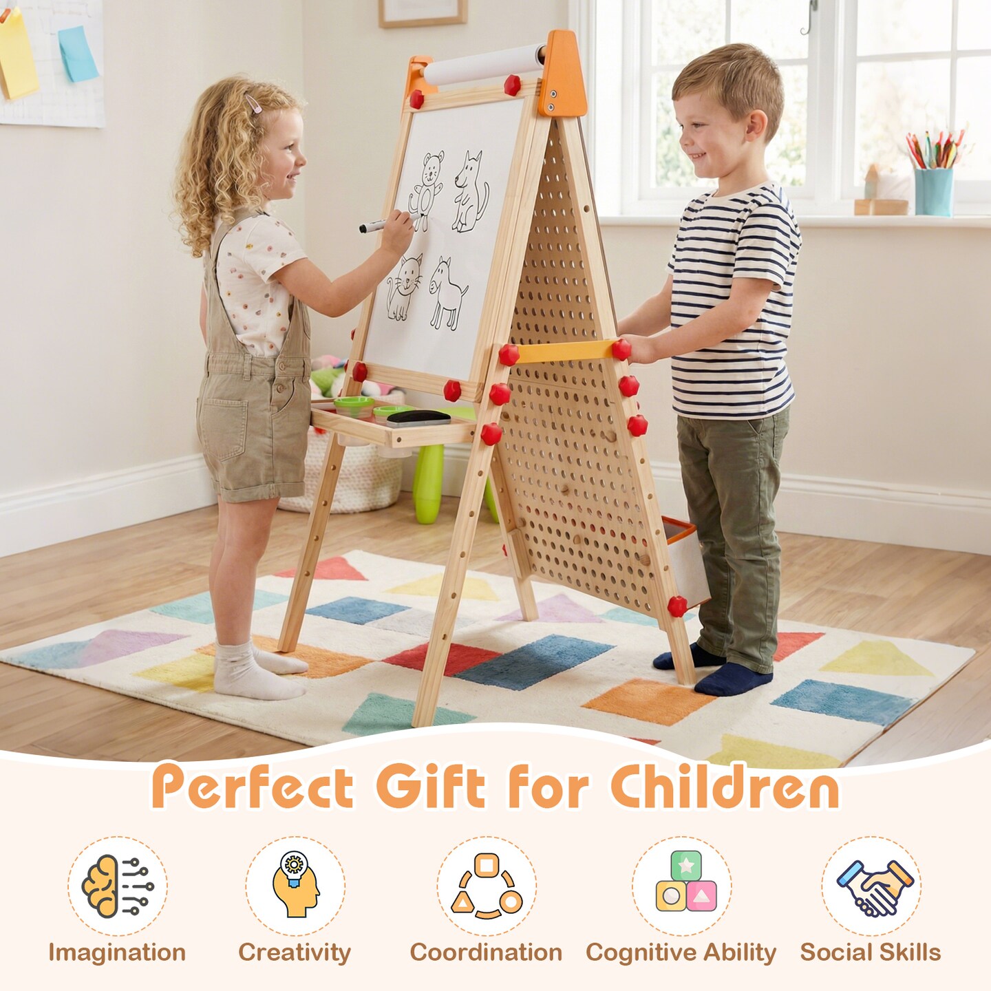 Fold-able 4-in-1 Kids Art Easel with Double Sides, Paper Roll, and Tray
