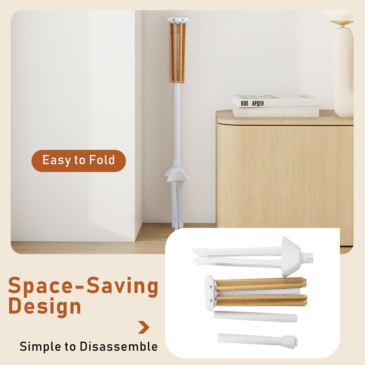 Foldable 4-Leg Clothes Drying Rack with 8 Bamboo Rods and 40 Hanger Slots