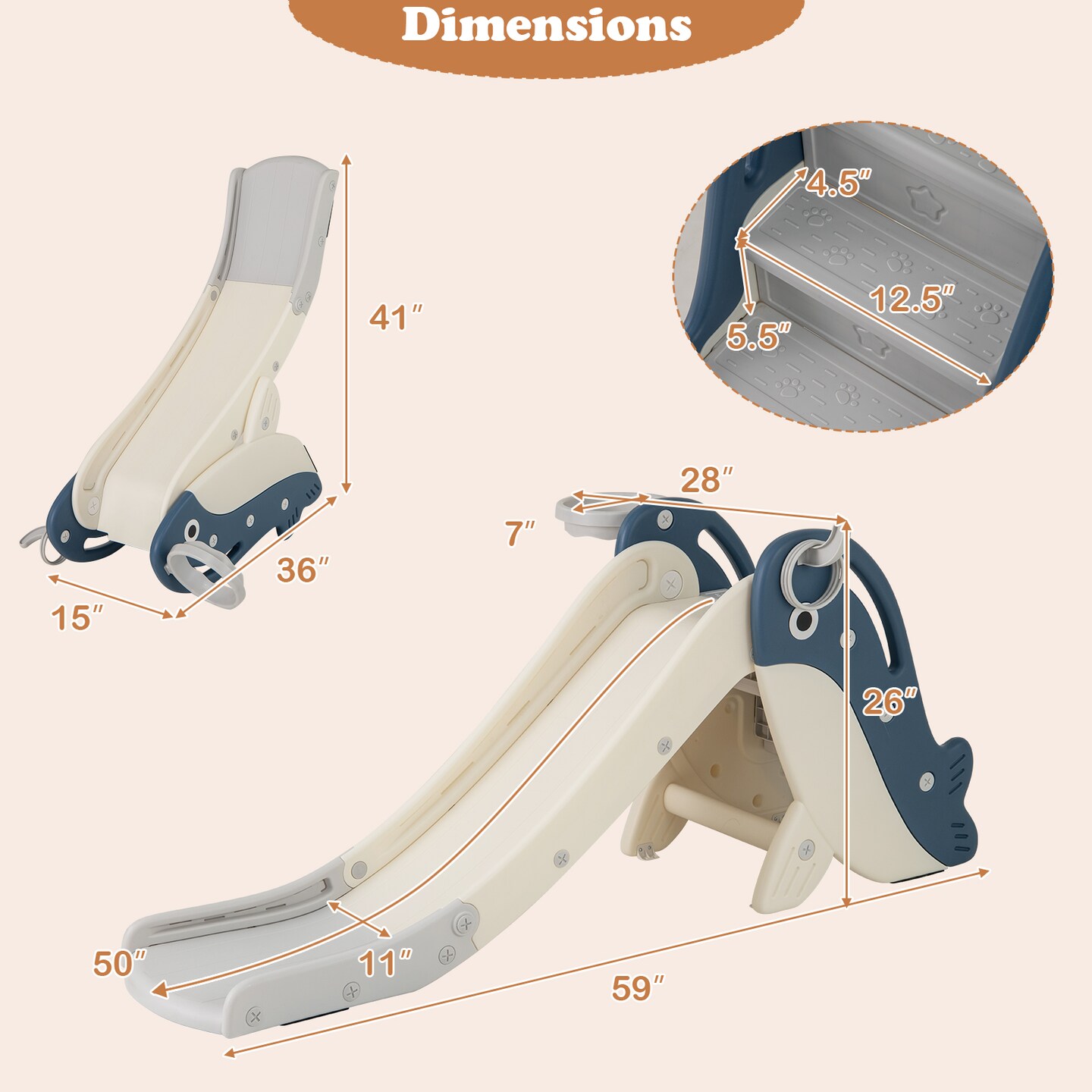 Foldable Freestanding Baby Slide with Climber and Hoop for Kids