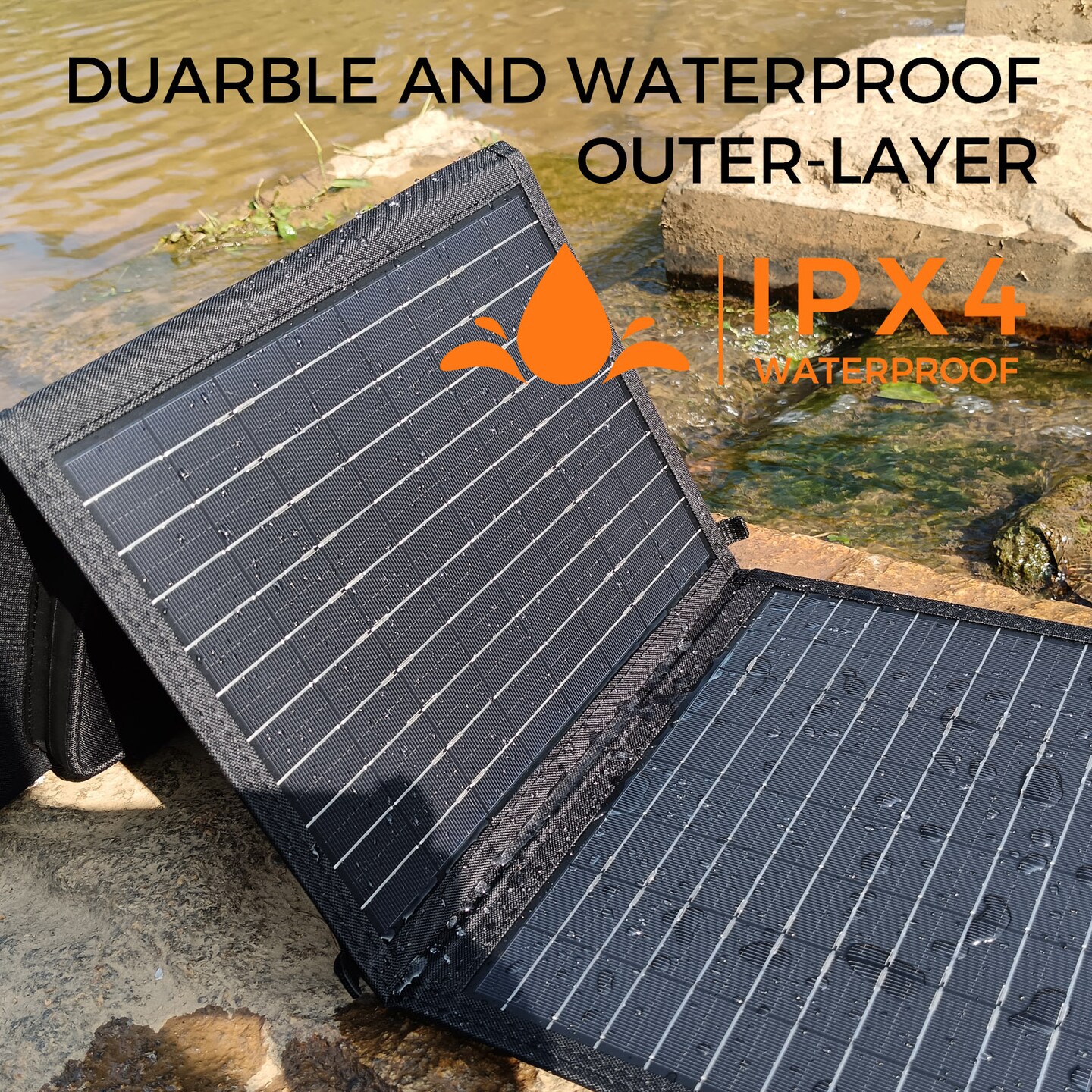Foldable Portable Solar Charging Panel Charges Power Stations and Personal Electronics, 3 Outputs Type-C/USB QC3.0/DC for Multi Devices, High Conversion Efficiency