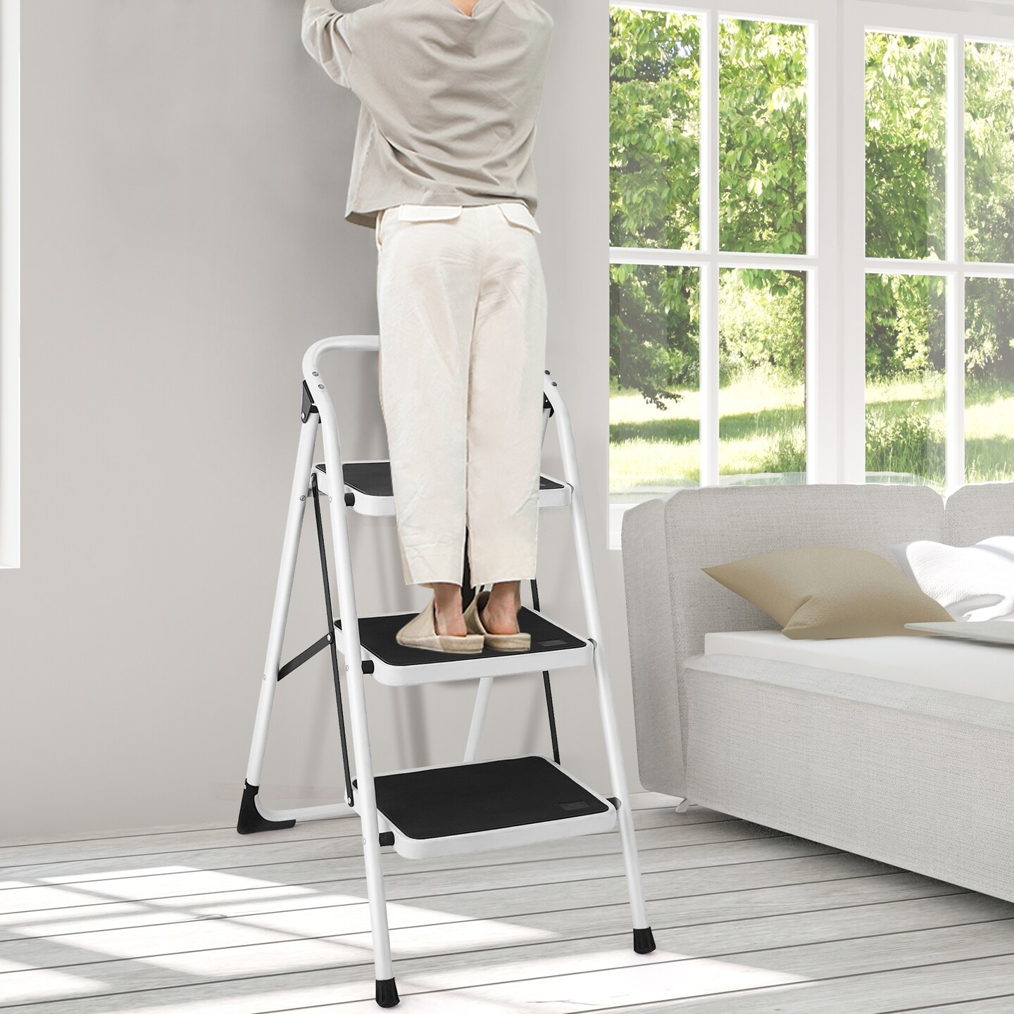 Folding 3-Step Ladder with Sturdy Handgrip and Slip-Resistant Steps