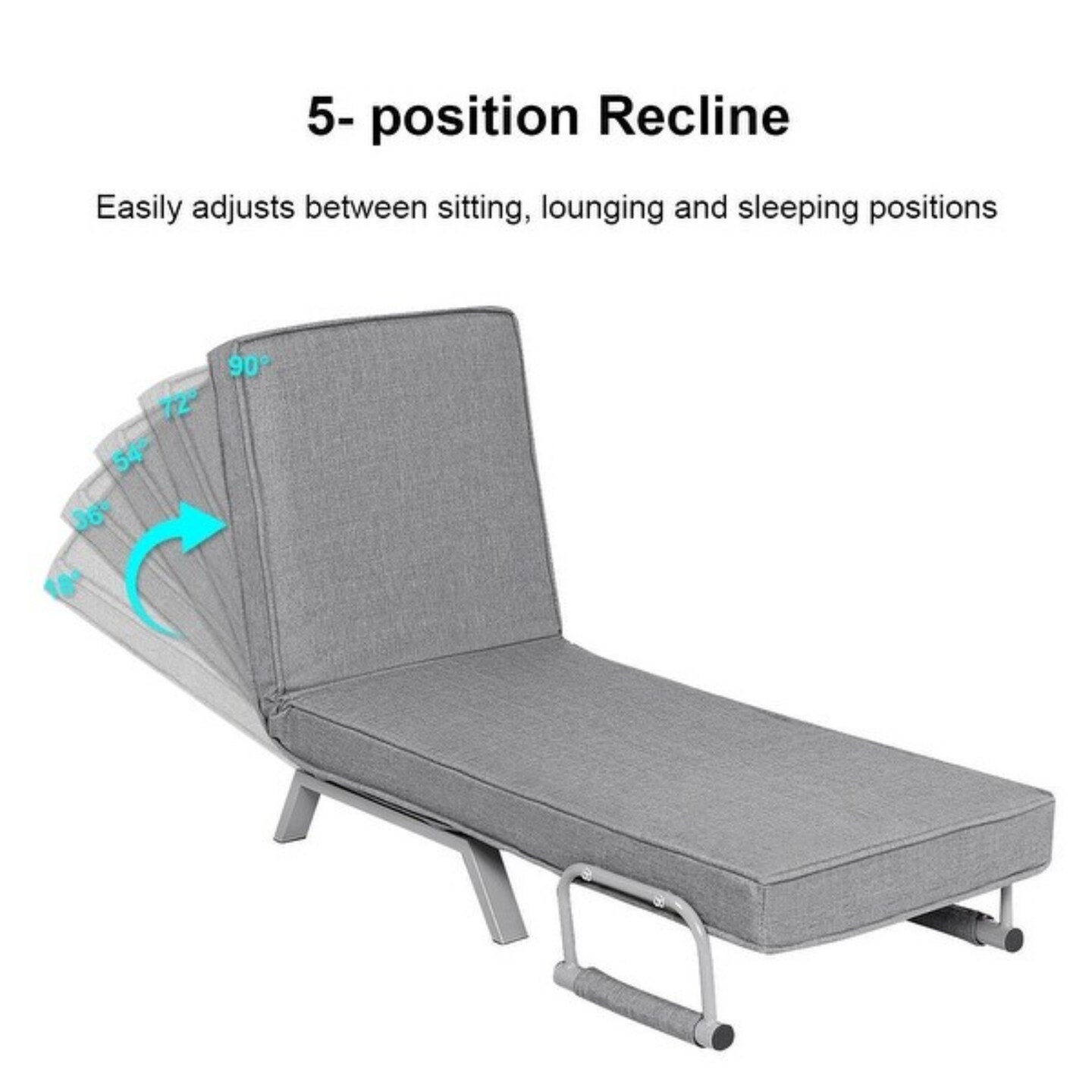 Folding Sofa Convertible Armchair Lounge Couch with Soft Back Cushion and 5 Back Reclining Angles